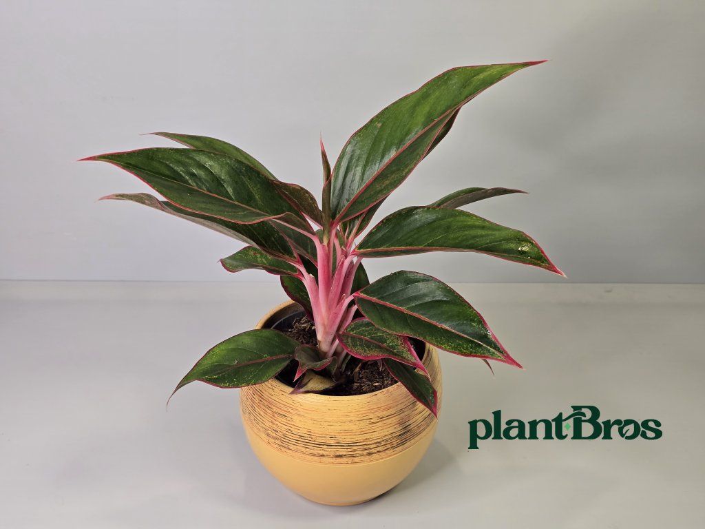 Aglaonema ‘Crete’ je výrazná izbová rastlina s dekoratívnymi listami, ktoré kombinujú zelené odtiene s ružovo-červeným lemovaním, vďaka čomu pôsobí veľmi sviežo a oživí každý interiér.
