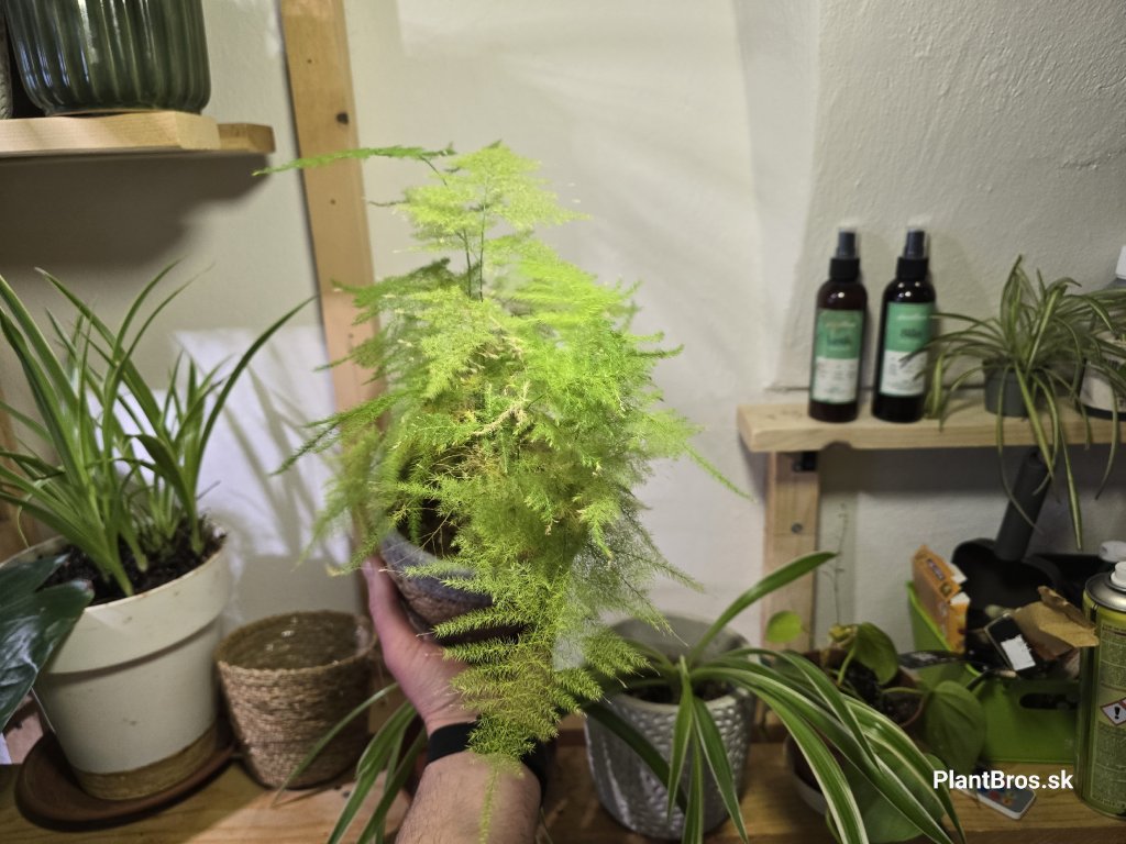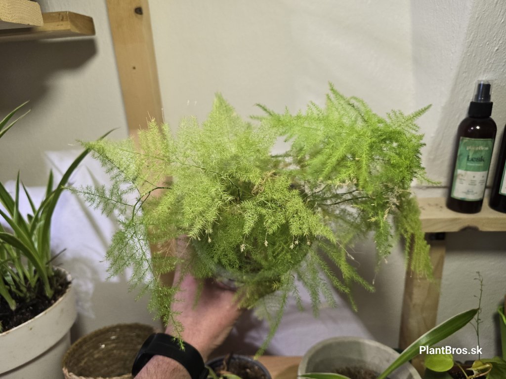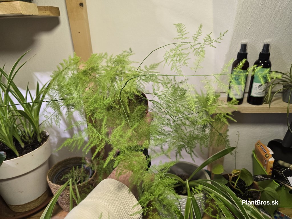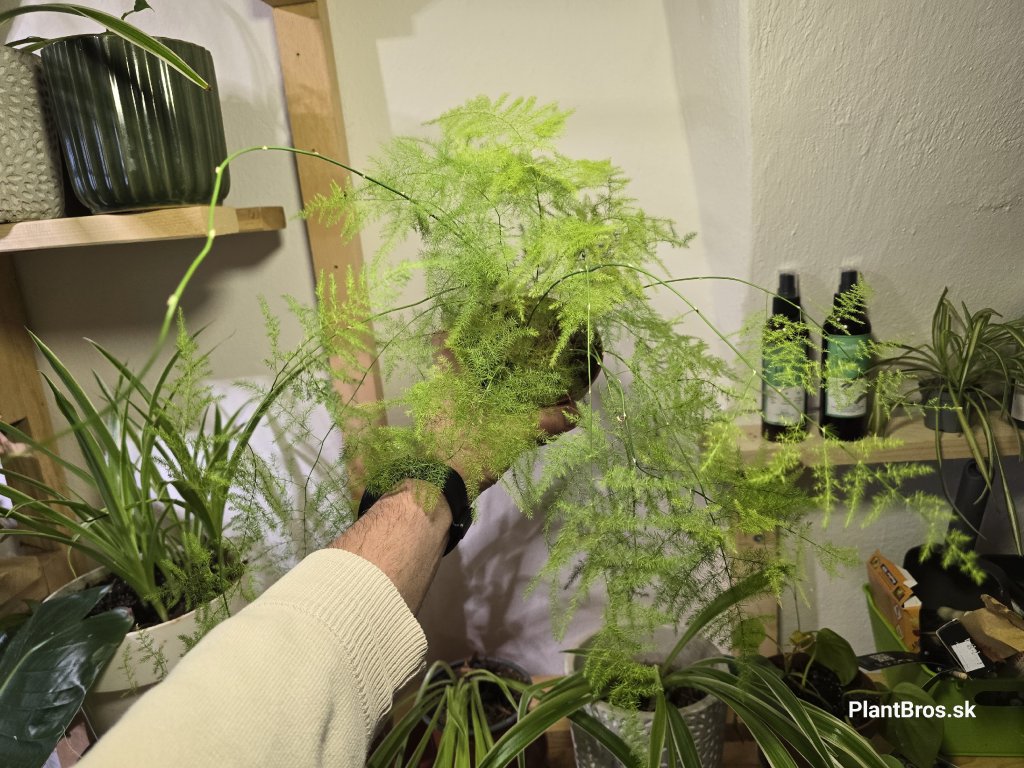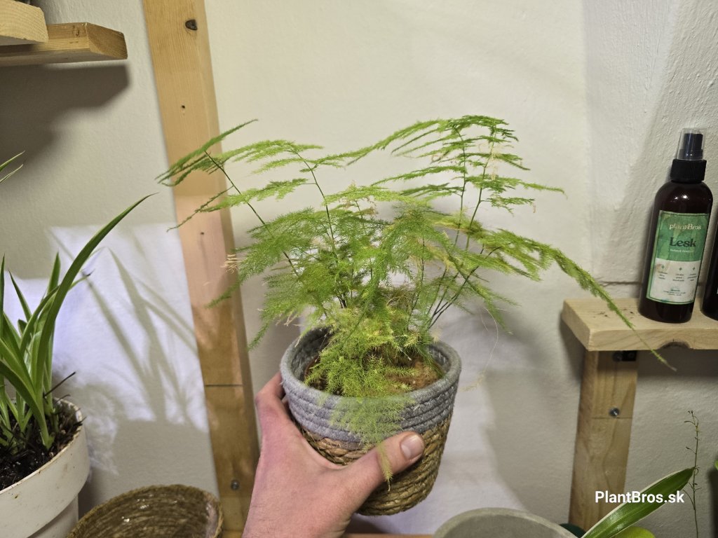 Asparagus densiflorus, známy ako hustokvetý alebo tiež "asparagus sprengerii", je elegantná izbová rastlina s jemnými, perovitými výhonmi, ktoré vytvárajú bohatý zelený závoj. Pôsobí vzdušne, nežne a sviežo – ideálna voľba pre tých, ktorí chcú do svojho interiéru vniesť kúsok prírodnej ľahkosti. Skvelo vyzerá v závesnom črepníku aj ako previsnutá rastlina na poličke.