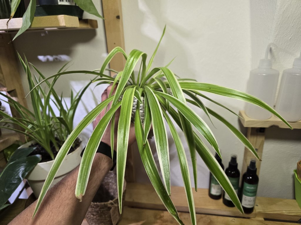 Chlorophytum comosum, často prezývaný aj pavúčia rastlina, je jedna z najspoľahlivejších a najodolnejších izbových rastlín vôbec. Jej elegantné, úzke listy so svetlým pruhovaním padajú v jemných oblúkoch a pôsobia sviežo a moderne.