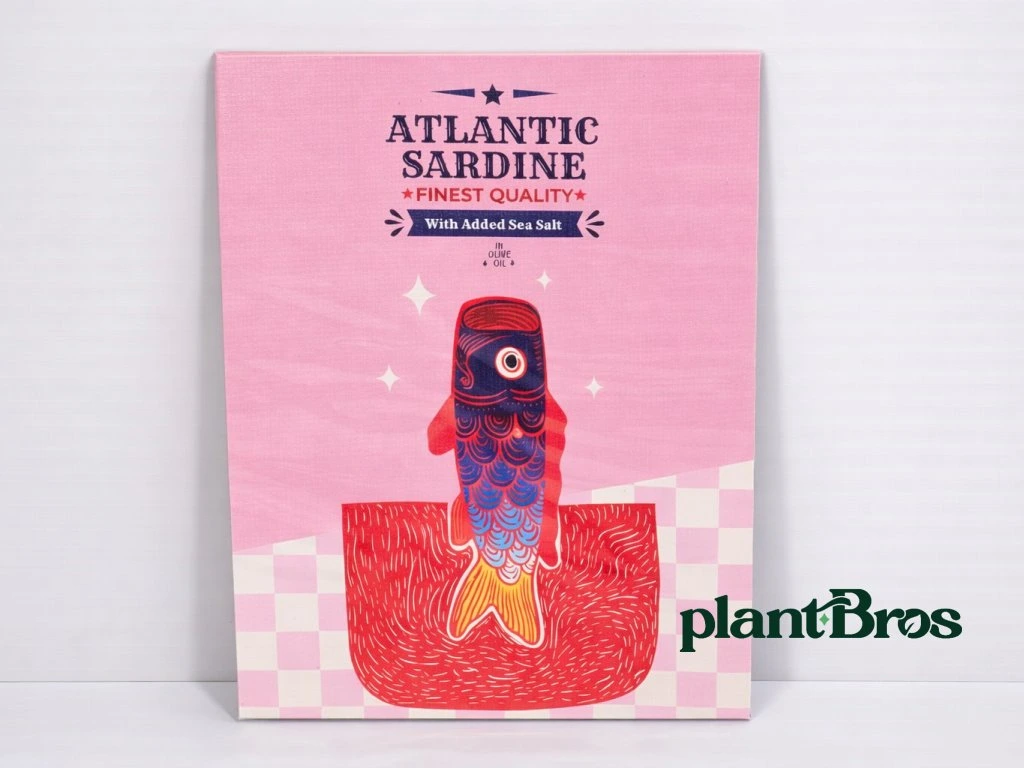 Originálny dekoratívny obraz na plátne s hravým motívom Atlantic Sardine v modernom ilustratívnom štýle. Výrazná kombinácia ružových a červených tónov spolu s grafickým motívom sardinky vytvára unikátny dizajn, ktorý okamžite oživí každú stenu.