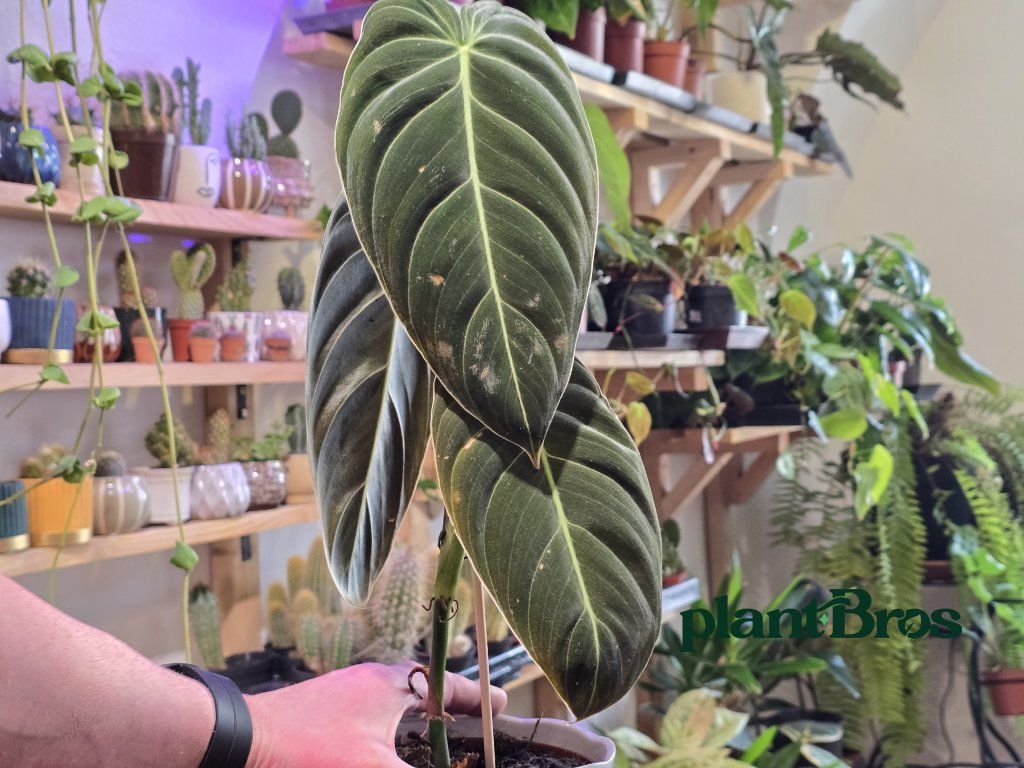 Zamatové listy s výraznou svetlou žilnatinou. Veľmi dekoratívna zberateľská rastlina. Popínavý philodendron s exotickým vzhľadom. Elegantná rastlina do moderných interiérov. Prináša do priestoru výrazný tropický akcent.