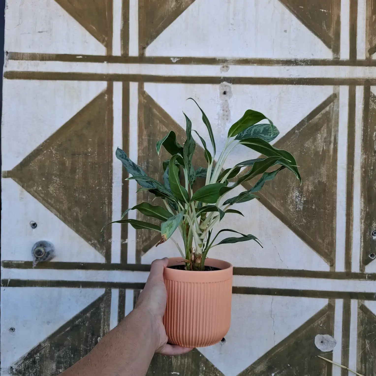Aglaonema ‘Juliette’ je krásna izbová rastlina, ktorá spája jemnú eleganciu so sviežou farebnosťou. Jej listy majú sýtozelený základ, ktorý je zdobený svetlými pruhmi a nádychmi ružovej až červenej. Vďaka svojej nenáročnosti a odolnosti sa stáva ideálnou spoločníčkou do bytu aj kancelárie.