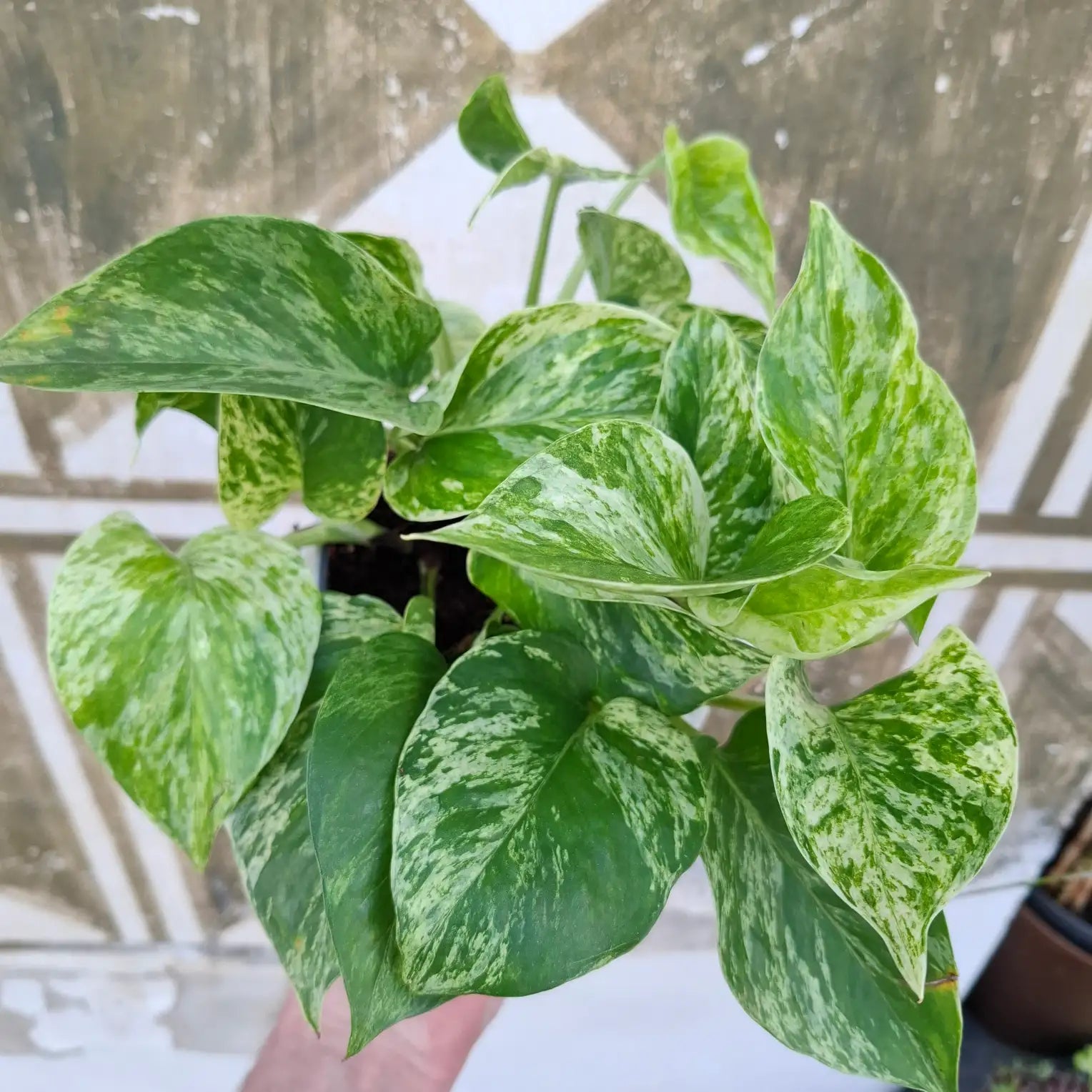 Epipremnum „Marble Queen“ je elegantná izbová rastlina so sýto zelenými listami bohato posiatymi bielou a krémovou panašáciou. Vďaka svojmu hustému rastu a nenáročnosti patrí medzi najobľúbenejšie popínavé rastliny do interiéru. Krásne vynikne na poličkách, v závesných kvetináčoch alebo vedená po opore.