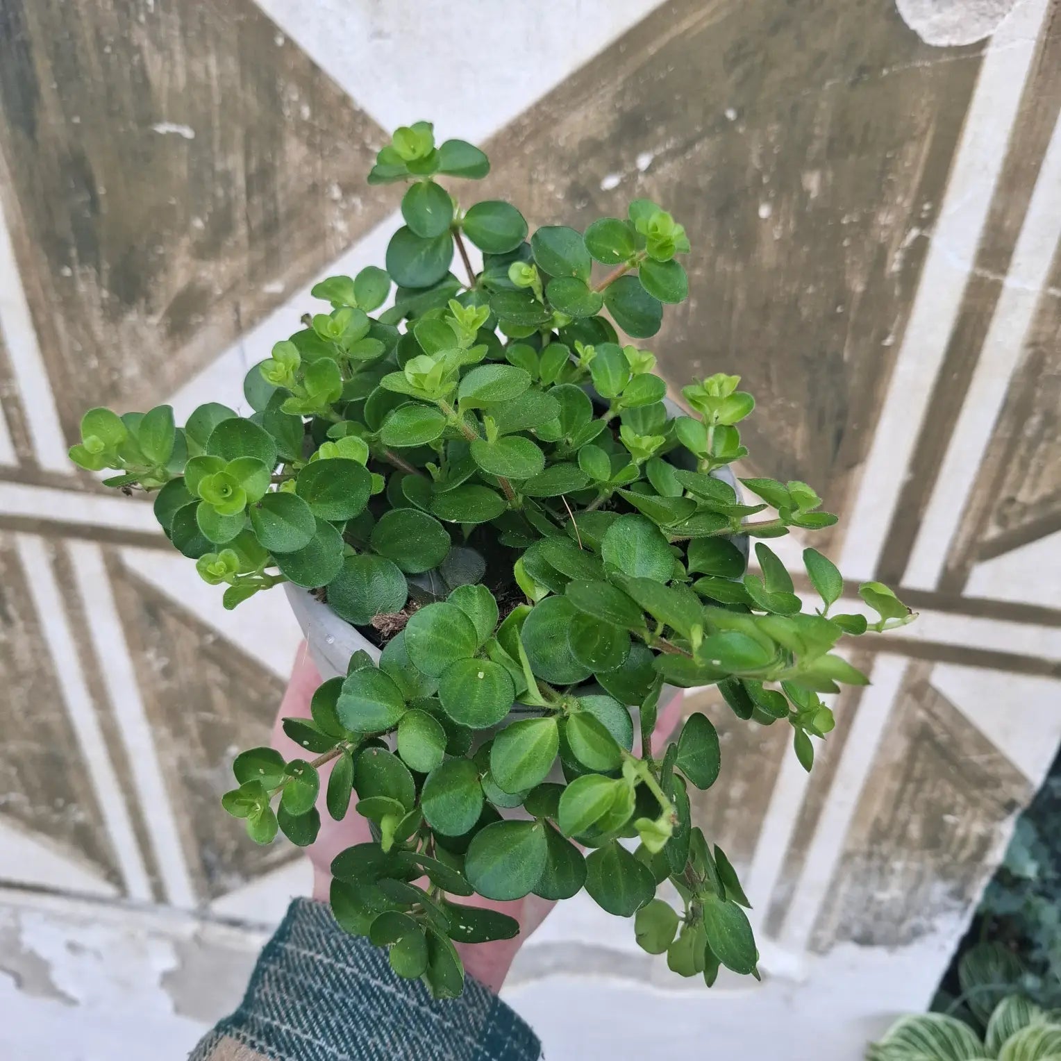 Peperomia Rotundifolia, známa aj ako "String of Turtles" vďaka svojim drobným okrúhlym lístkom, je ideálna rastlina na zavesenie alebo dekoráciu poličiek. Jej jemné výhonky sa splývavo vinú nadol a vytvárajú svieži zelený záves, ktorý oživí každý priestor. Táto nenáročná rastlina poteší každého, kto túži po štýlovej, ale jednoduchej izbovke.