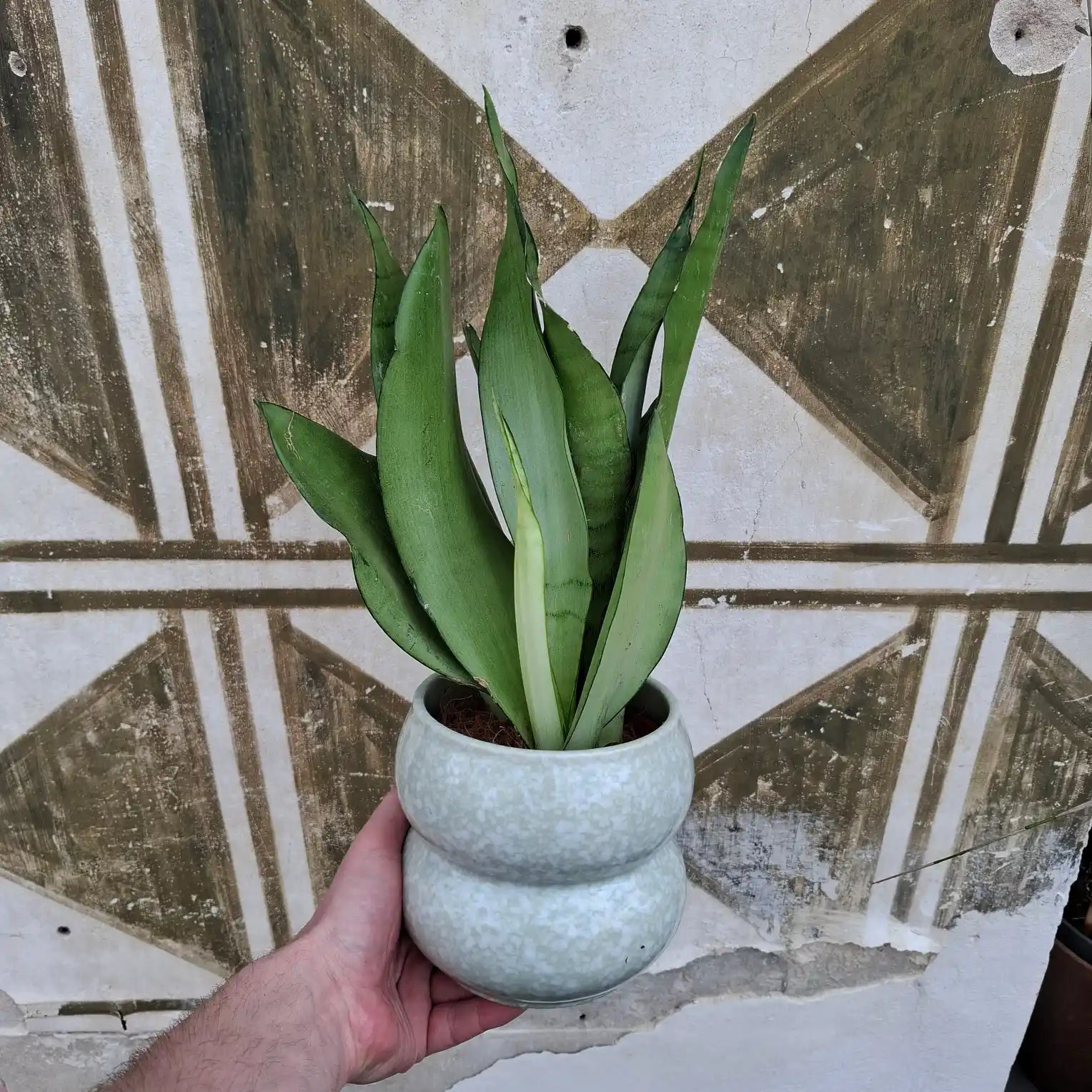 Sansevieria Trifasciata "Moonshine" očarí každého milovníka čistých línií a tlmených tónov. Jej striebristo-zelené listy s jemným mramorovaním vytvárajú moderný a sofistikovaný dojem – akoby boli osvetlené mesačným svitom. Táto odroda svokrineho jazyka je nielen štýlová, ale aj extrémne nenáročná – zvládne zabudnuté zálievky, suchý vzduch aj slabšie svetlo.