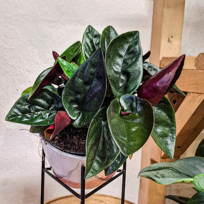 Syngonium 'Red Arrow' je výnimočné šípkolisté syngónium, ktoré upúta kontrastom tmavozelených, zamatových listov a sýto červených spodných strán. Táto tropická kráska je ideálnym spestrením každej zelenej zbierky – pôsobí elegantne, tajomne a zároveň moderne. Vďaka kompaktnému vzrastu a jednoduchému pestovaniu sa hodí aj do menších interiérov.