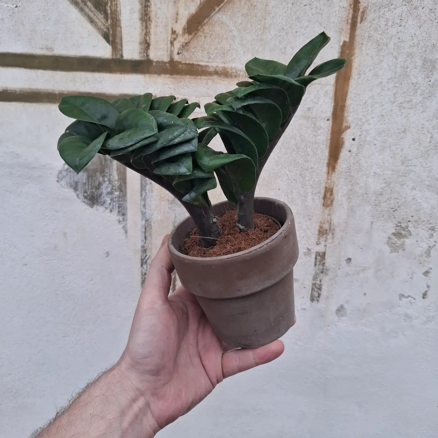 Zamioculcas ‘Zenzi’ je minimalistická a elegantná verzia klasického zamioculcasu – s kompaktnejším rastom, hrubšími stonkami a hustými, tmavozelenými listami, ktoré pôsobia prémiovo a dokonale uhladene.