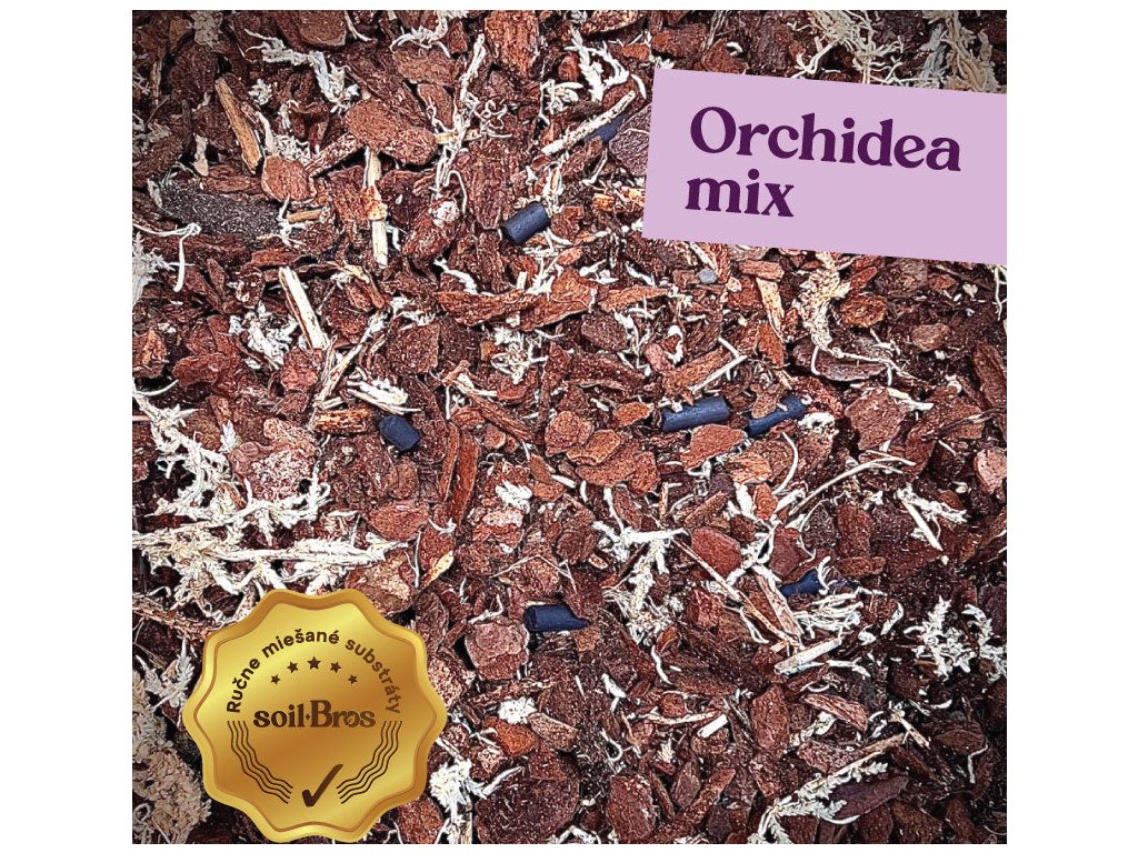 Orchidea Mix je ručne miešaný substrát vyrobený z kvalitnej rašeliny s vysokým obsahom vlákien a humusu, doplnený o perlit, zeolit, piesok, riečny štrk, lávovú drť, keramzit, lignocel, kokosové vlákno, drevené uhlie, antuku, píniovú kôru a sphagnum moss (rašelinník).